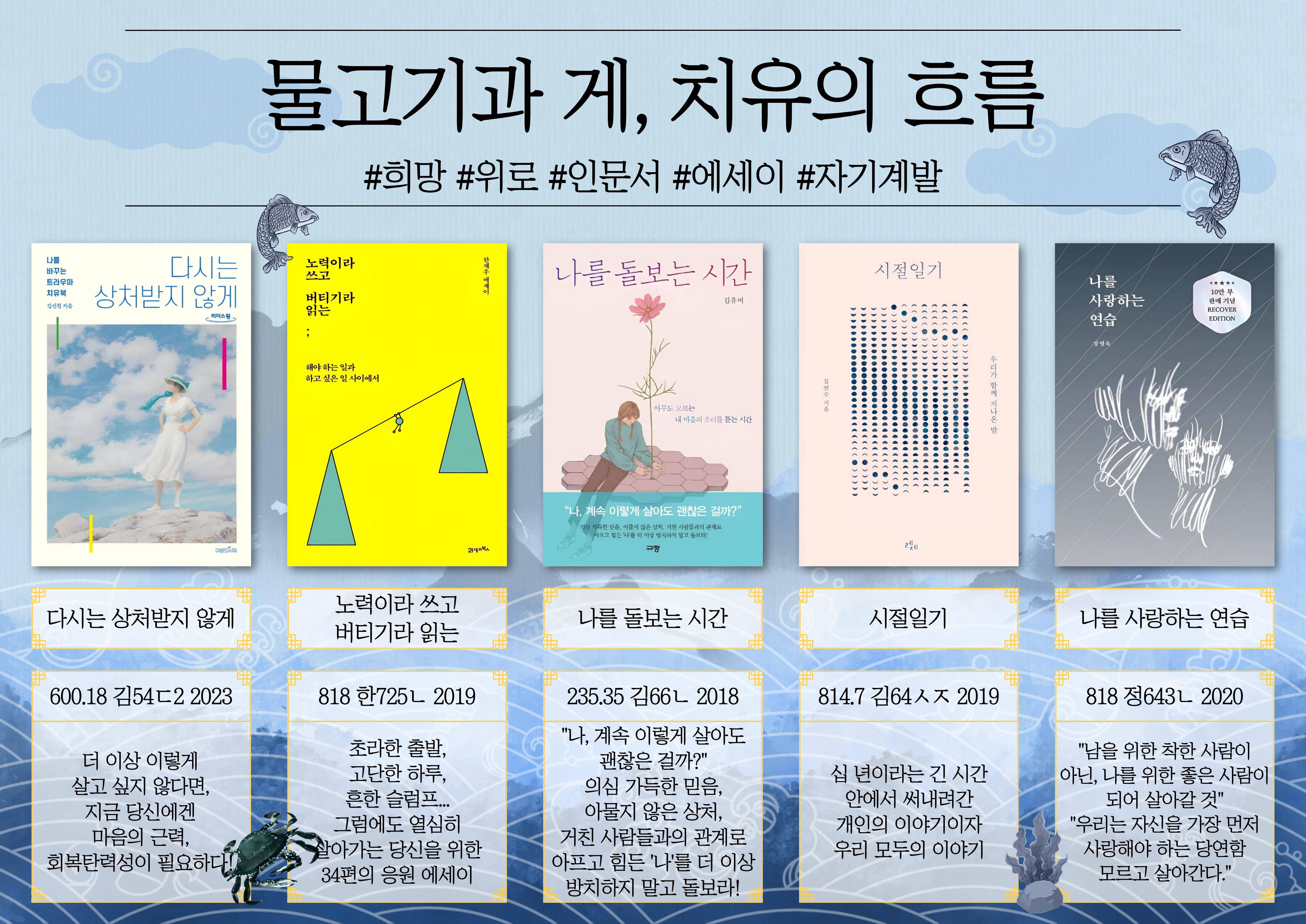 전시 장소: 도서관 4층 로비 및 1층 전자게시판, 전시서가 전시