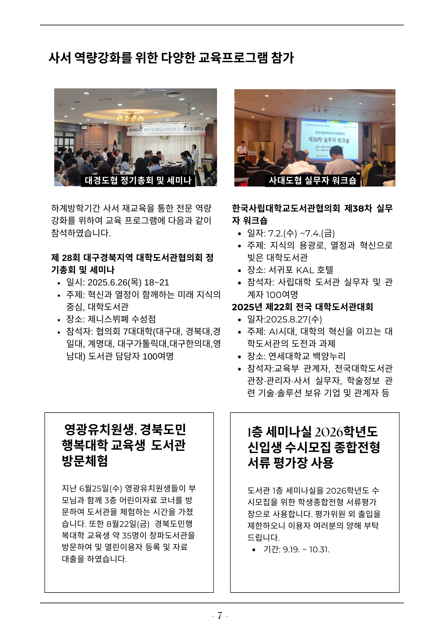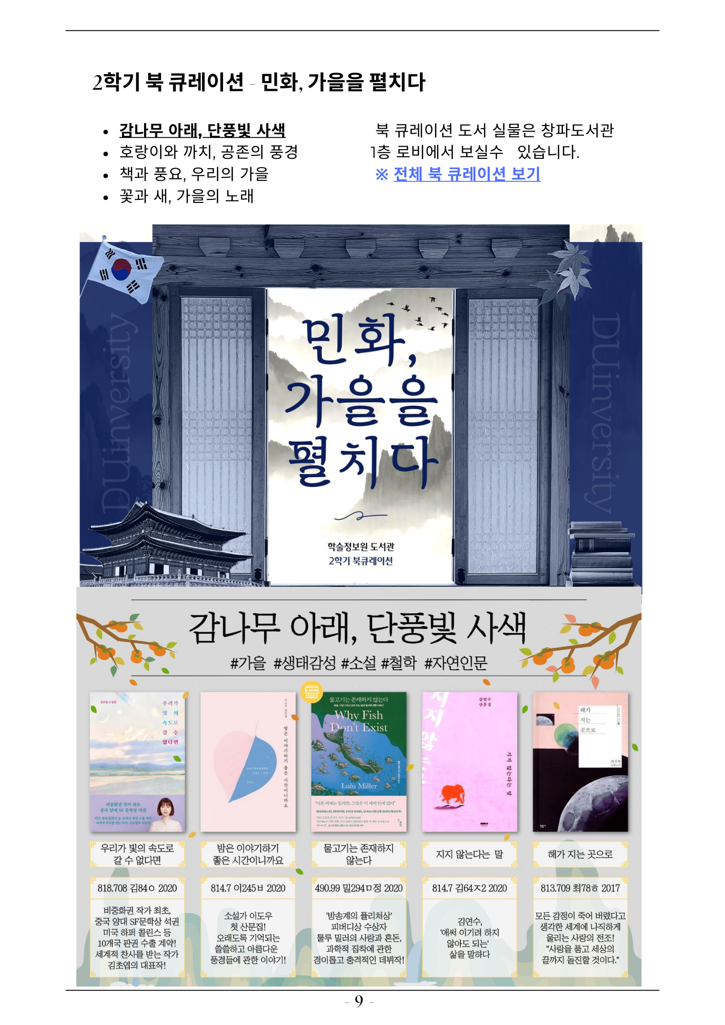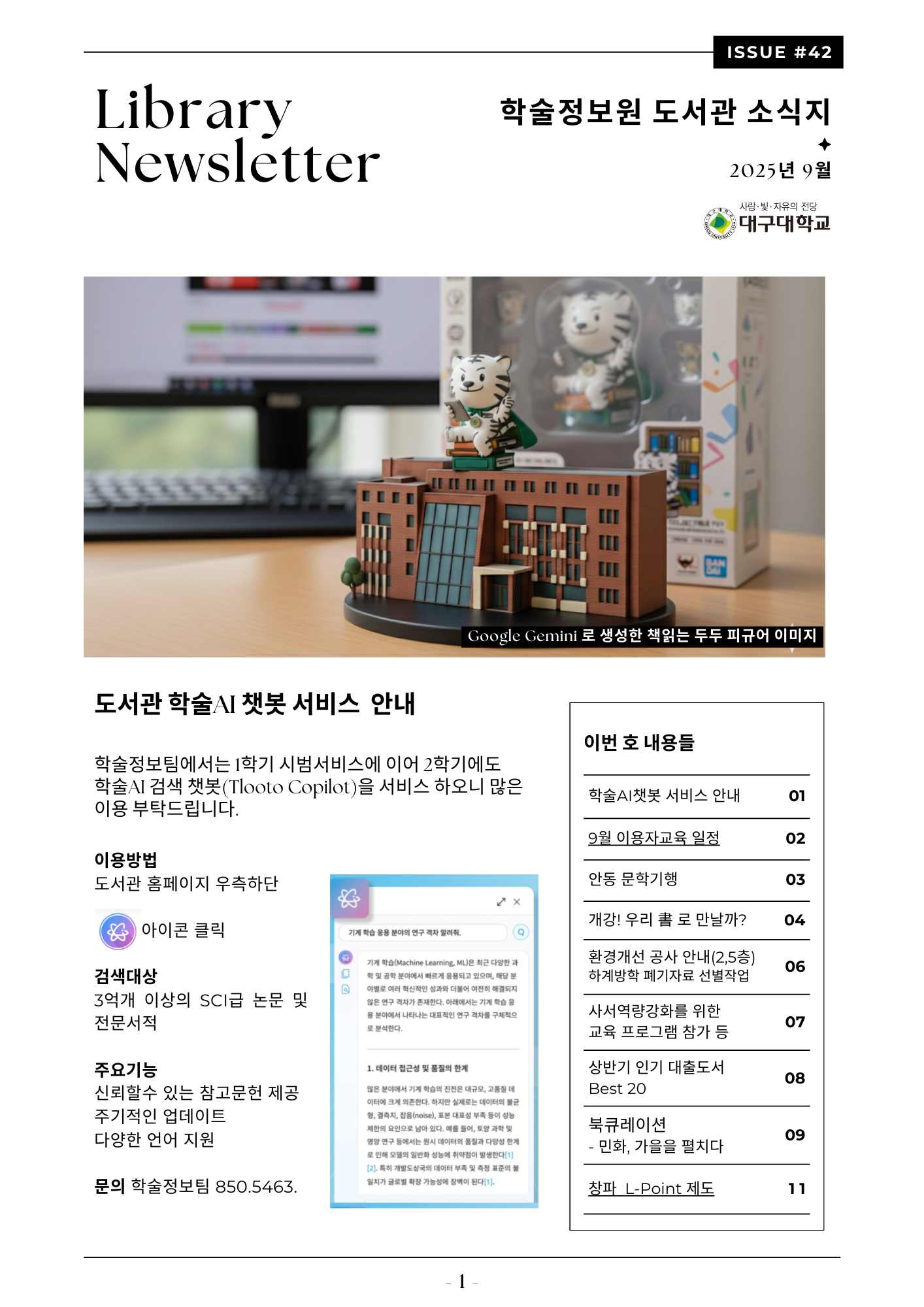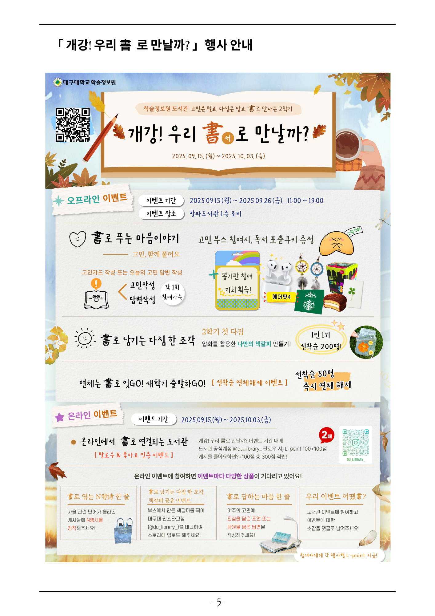 | 2025학년도 2학기 학술정보원 도서관 운영 시간 안내 (0) | 2025.10.14 |