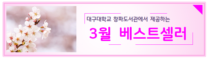 창파도서관에서는 이용자들께 양질의 도서정보를 제공하고자 매달 국내 인터넷 서점의 베스트셀러 정보를 참고하여 종합 20위, 각 주제분야 10위까지의 목록을 안내하오니 많은 이용 바랍니다.