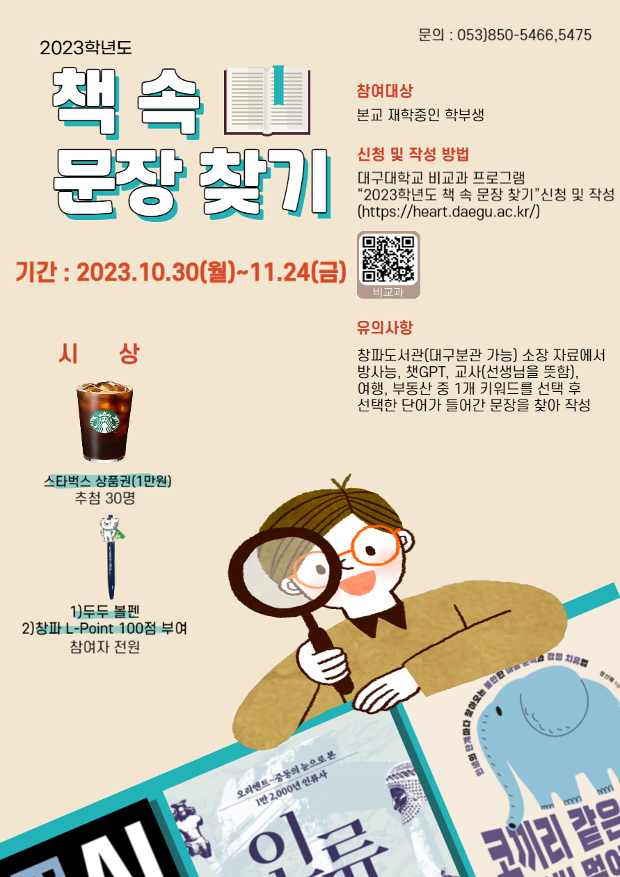 | 2023 온라인 독서퀴즈 대회 (0) | 2023.04.24 |