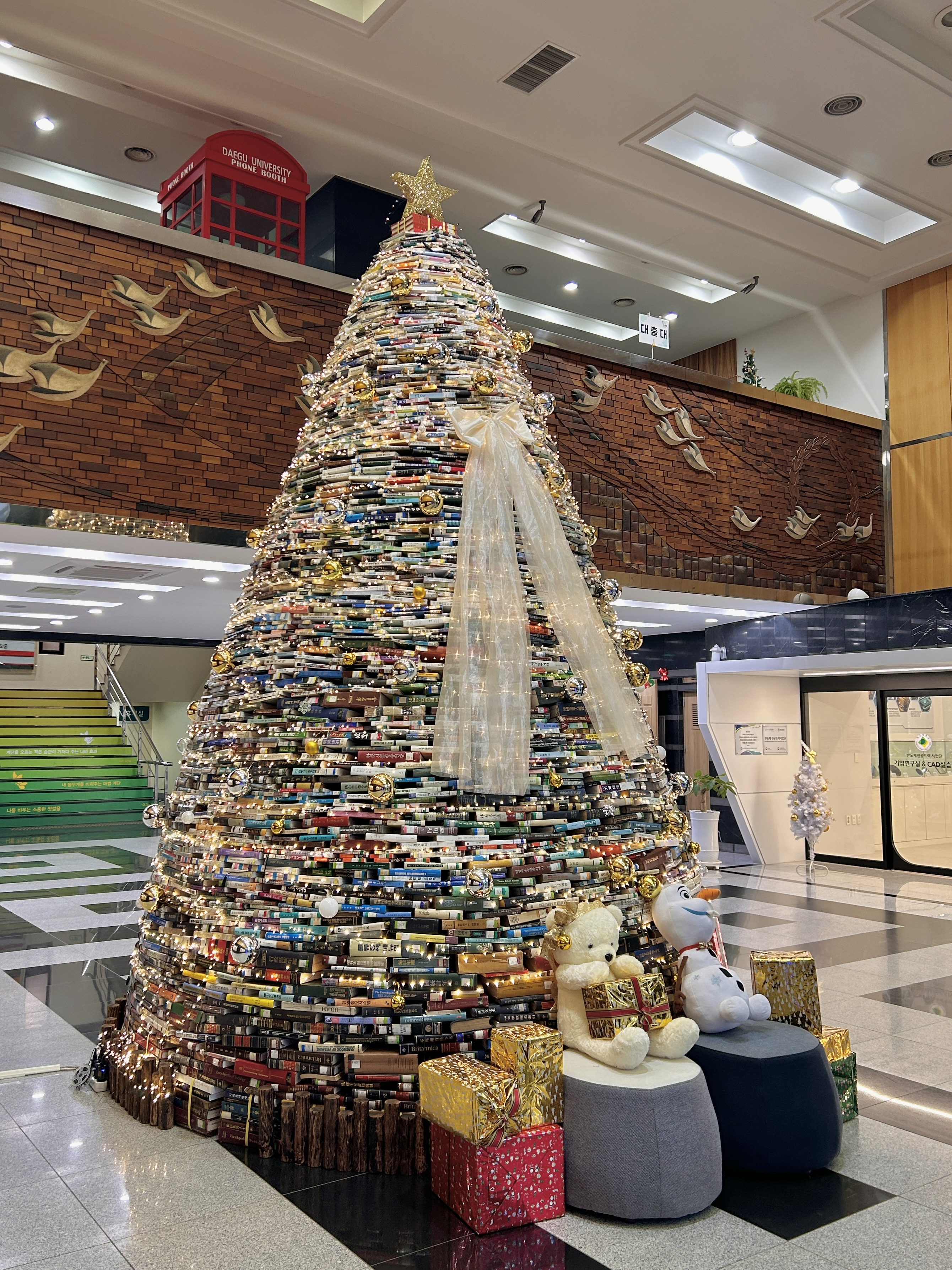 안녕하세요! 대구대학교 학술정보원 도서관 블로그입니다. 😊2025년 한 해의 끝자락, 도서관이 가장 따뜻하게 빛나는 계절이 찾아왔습니다.❄️ 올해도 어김없이 학술정보원 도서관 1층 로비에는 약 4,000권의 책으로 만든 대형 북트리가 설치되었습니다. 책의 크기와 높이만큼 웅장하고 따뜻한 분위기로 로비를 환하게 밝히고 있습니다.이 북트리 전시와 함께 여러분의 연말을 더욱 특별하게 만들어 줄 다채로운 행사들도 진행됩니다.소원 오너먼트 달기마음을 녹이는 겨울 음악 감상북카페와 연계된 특별한 이벤트 등책의 따뜻한 온기 속에서 특별한 연말 분위기를 느껴보세요! 대구대학교 학술정보원 도서관은 여러분의 2025년 끝자락에 작지만 포근한 휴식과 추억을 선사할 것입니다.많은 방문과 참여 부탁드립니다! 북트리 전시는 2..
